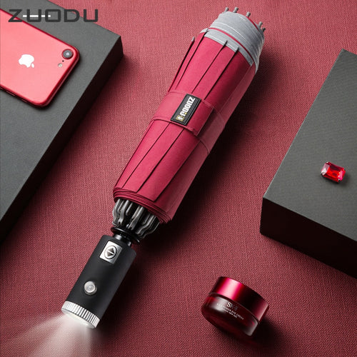 ZUODU Automatic Reverse Umbrella Men Led Luminous Windproof Folding Business Strong Umbrella Rain Men Car High Quality Umbrellas