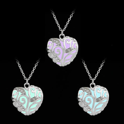 Heart Shape Hollow Pendant Glowing in the Dark Necklace For Women Crystal Luminous Necklace Jewelry Wholesale Christmas Gifts